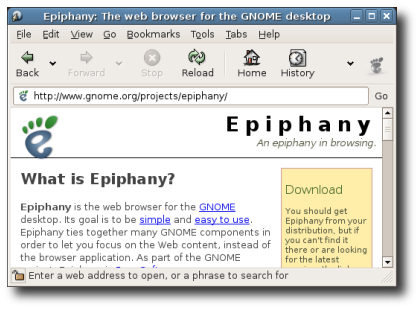 Epiphany follows the GNOME guidelines about usability. You don’t have to learn how to use Epiphany. Epiphany just speaks your language.