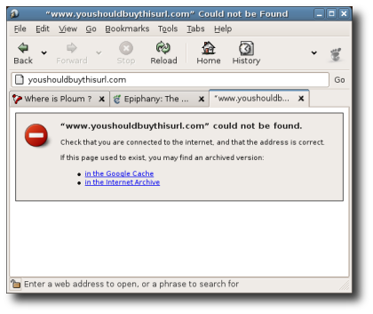 You mistyped an URL? A server is not responding? An unobstrusive error is displayed in the window, allowing you to seamlessly continue your navigation in other tabs or to search for the page in Google Cache.