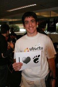 The mandatory « I’m a true nerd and I love GNOME » picture. « Do you know where is Vuntz ? He just won a pepperpad ! » « Vuntz ? He’s behind the camera, as usual. »
