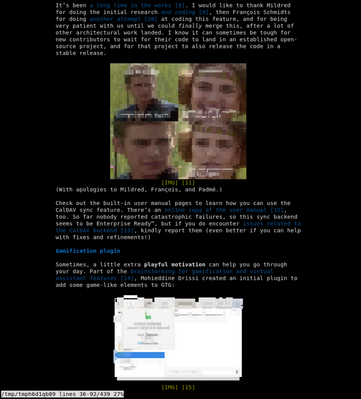 I thought it would be fun to have chafa rendering pictures in Offpunk and tried it. It was just a proof of concept. But I was quickly convinced. It was working so well that I could easily tell if a picture was an important one I should open or a decorative one I could skip. In a word, it was "useful". One more tool to extract information that people are deliberately burying while trying to promote it.