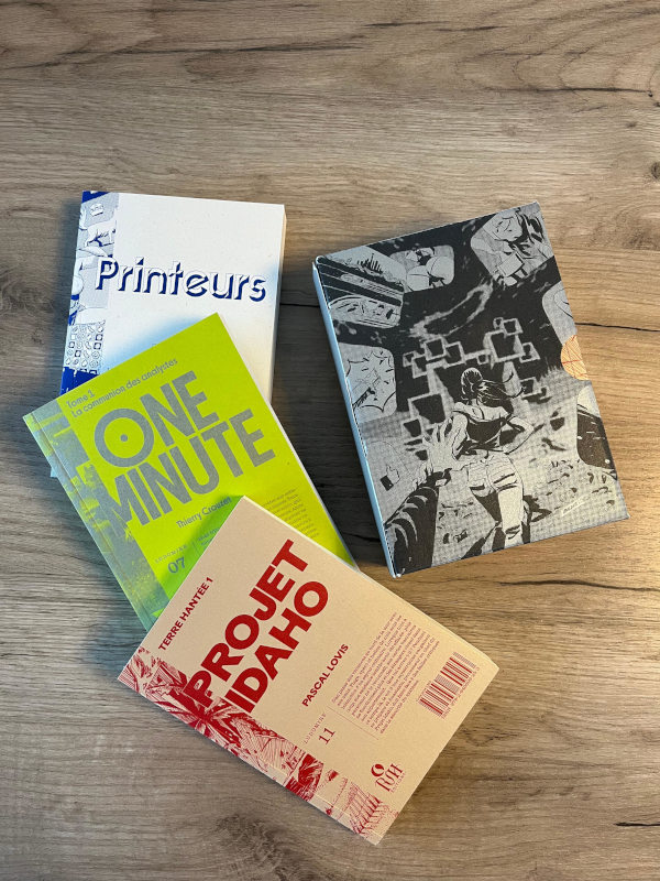 Tout d’abord avec Ploum, le Belge qui pense qu’il faut un titre à consonance anglophone pour faire de la SF, mais ne peut s’empêcher de le franciser : « Printeurs ». Un roman dystopique et cyberpunk sur la face cachée du capitalisme de surveillance : publicités envahissantes, vie privée réduite à néant, attentats sponsorisés, chômeurs hypnotisés par les stars du petit écran tandis qu’en coulisses, les esclaves se tuent à la tâche pour produire les biens de consommation jetables.