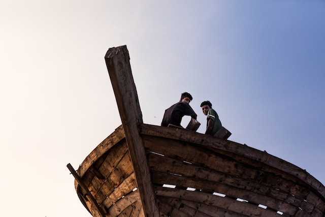 Naturellement, le bateau prenait désormais l’eau de partout. Un original aux cheveux en bataille émit l’idée d’arrêter de découper la coque si l’on ne voulait pas couler.