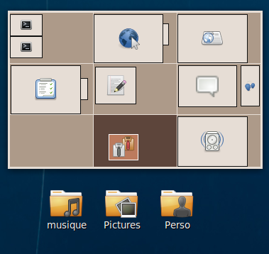 Gpager is a GPLv2 libwnck pager that just float on your desktop, allowing you to do anything you were doing with you panel pager but bigger and stronger.