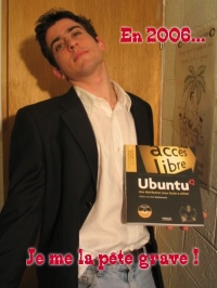 PS : J’ai reçu une demande de dédicace (waw ! À moi les filles en bikinis dans ma piscine privée !). Bien que je n’aie encore jamais fait de dédicace de ma vie, je suis extêmement flatté. Je n’ai pas de livre en stock et je n’ai de toutes façons pas le droit d’en vendre. Il est donc nécessaire que vous vous procuriez le bouquin par vos propres moyens. Commandez-le chez votre libraire. S’il reçoit plusieurs demandes de ce style, il sera sans doute tenté de les mettre en étalage, ce qui est une excellente chose ;-). Une fois que vous avez le livre, passez lors d’un First Jeudi à Louvain-la-Neuve. D’autre part, il me semble qu’il y a pas mal d’Ubunteros à Waterloo. Si jamais un « WaterLug » se forme et organise des activités, prévenez-moi, je serais heureux de participer. Une autre solution est encore de vous joindre à la discussion Ubuntu-be au FOSDEM en février 2006.