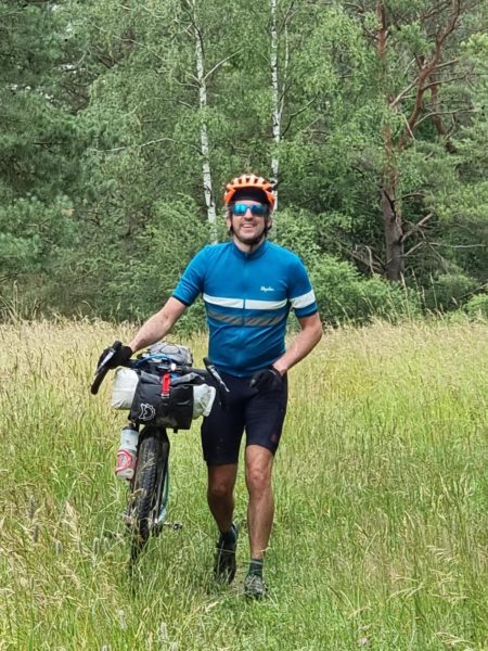Je tiens ma formation initiale et ma philosophie du bikepacking de Thierry Crouzet, auteur du livre « Une initiation au bikepacking » (dans lequel je fais un peu de figuration) : Partir en autonomie, mais le plus léger possible, éviter les routes à tout prix,préférer l’aventure et la découverte à la performance ou à la distance.