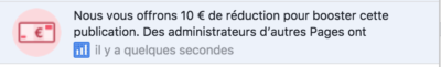 À ce moment, Facebook propose à notre administrateur de payer pour être vu plus de fois. Après tout, qu’est-ce que 10€ pour obtenir 1000 vues supplémentaires ?