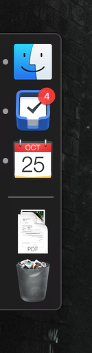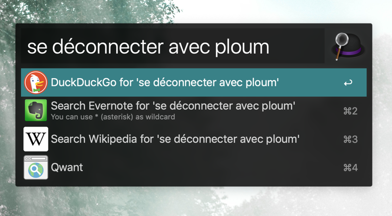 Pour mon ordinateur, j’ai également fait du nettoyage dans la barre de lancement rapide, ne laissant que le calendrier et ma liste de todo. Pour le reste, je dois taper le nom de l’application dans Alfred, ce qui m’oblige à réfléchir et ne pas être dans le réflexe de cliquer sur une icône. De ce fait, je n’accède à mon navigateur qu’en tapant une recherche DuckDuckGo dans Alfred.