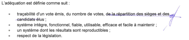 Surprise, « la répartition des sièges et des candidats élus » est barrée. En gros, le système se bornera à vérifier que le nombre de votes est corrects, c’est tout !