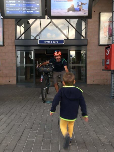C’est le retour à Bruxelles puis à Ottignies. Dans le dernier train, je remonte mon vélo, prêt à pédaler immédiatement vers ma famille. Mais j’étais attendu, il sera dit que mon vélo avait fini son travail. Malgré les nombreux changements et la complexité de la traversée de Paris, cela fait à peine 6h que j’ai quitté Brigitte et Vincent. Je me sens reposé. Tout le contraire d’un trajet en voiture.