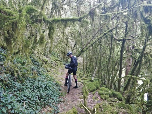 La route s’élève vite sur des pistes de gravel. Mon domaine. J’aime quand ça monte, quand le fin gravier roulant crisse sous les pneus. À la redescente, je déchante. Les passages plus caillouteux et plus techniques me forcent à mettre pied à terre.