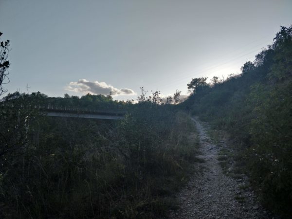 Nous empruntons des sentiers qui semblent oubliés depuis le moyen-âge. La pieirraille alterne avec la végétation dense. Aucune ville, aucune agglomération. Les villages ne sont que des noms sur la carte avant de se révéler des mirages, un couple de maisons borgnes se battant en duel et nous ayant fait entretenir le faux espoir d’une terrasse de café.