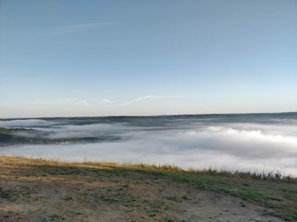 Après une nuit dans le calme absolu au sommet de notre mamelon, à apprécier ma tente et mon sac de couchage, mon petit cocon, nous découvrons que la vallée est devenue une mer de nuages de laquelle nous émergeons. La vue est magnifique.