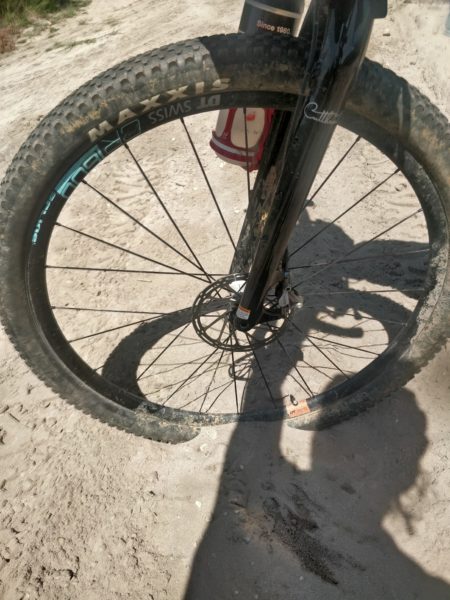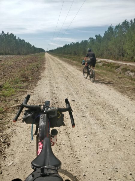 Pour faire un peu d’animation, le bitume se transforme en sable. Si c’est un peu technique au début, j’en suis vite réduit à pousser ma bécane avant de repartir en pédalant dans les bruyères du bas-côté.