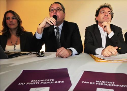 Nathalie Noiret, Mischaël Modrikamen et Rudy Aernoudt au lancement du Parti Populaire.